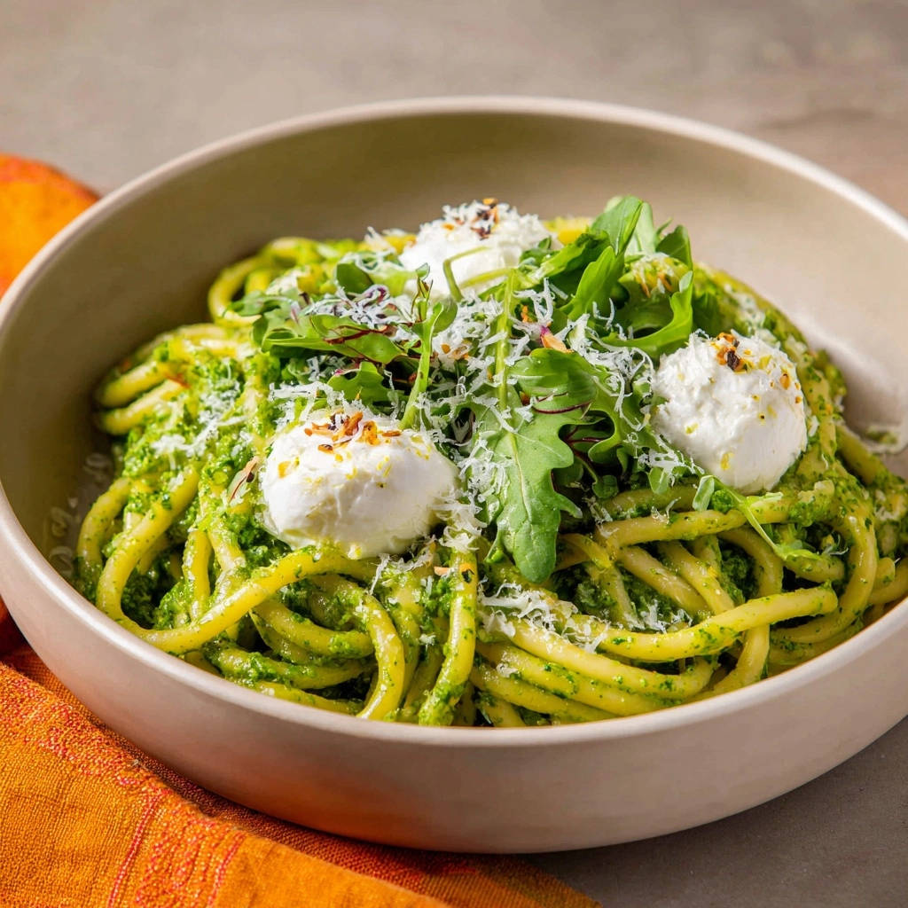 Learn the simple trick for perfect Bucatini with Pesto and Burrata where the sauce actually clings! A creamy, flavorful weeknight meal.