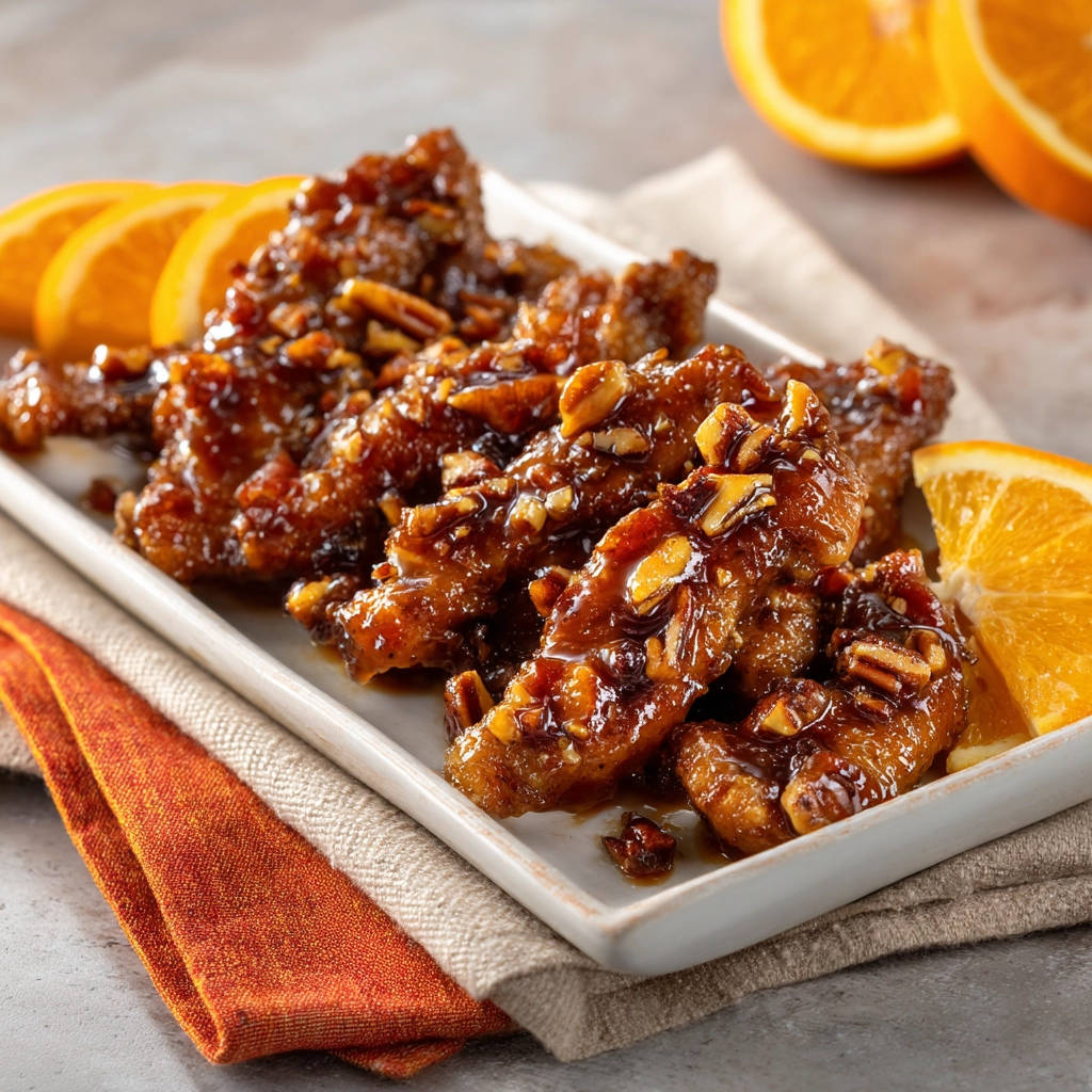Get the secret to Sweet & Sticky Glazed Chicken that stays perfectly crispy under the sauce! Easy recipe with vibrant orange, soy, and ginger flavors.