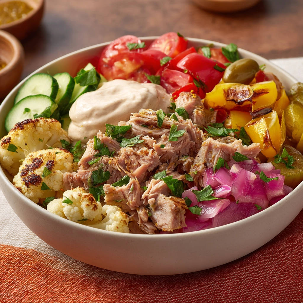 Say goodbye to dry protein! This amazing Mediterranean-Inspired Protein Bowl keeps chicken or tuna moist with a creamy dressing.