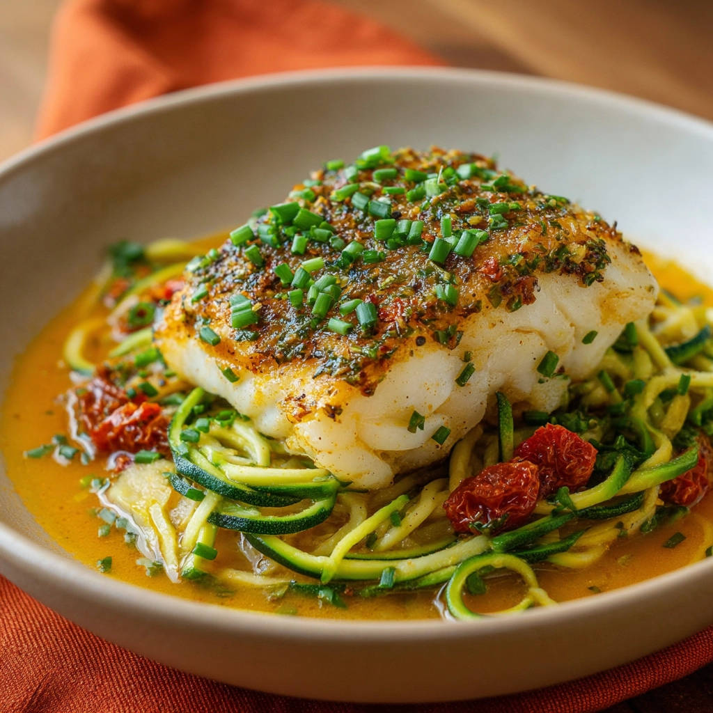 Master pan-seared white fish with zucchini noodles for guaranteed juicy results! Quick, healthy, & flavorful weeknight dinner.