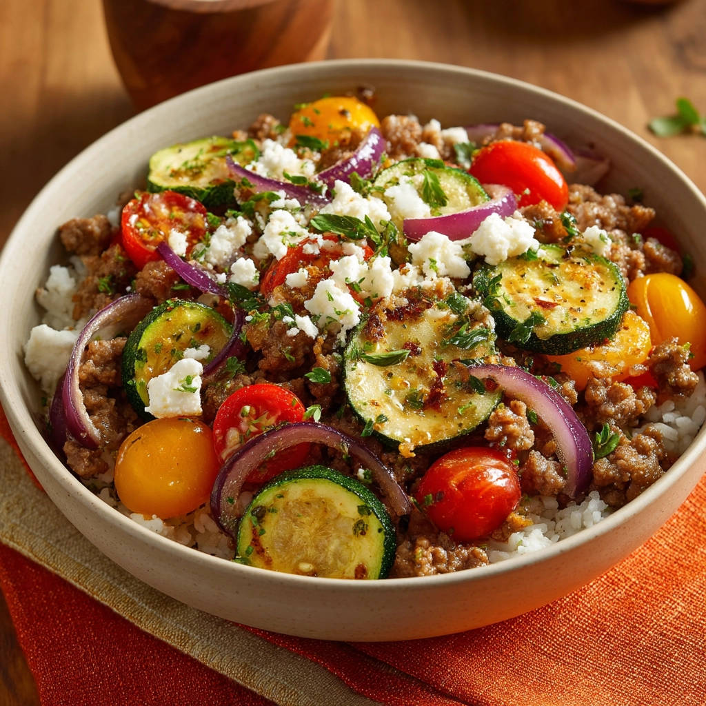 Mediterranean Meat & Veggie Rice Bowl: Never Bland!