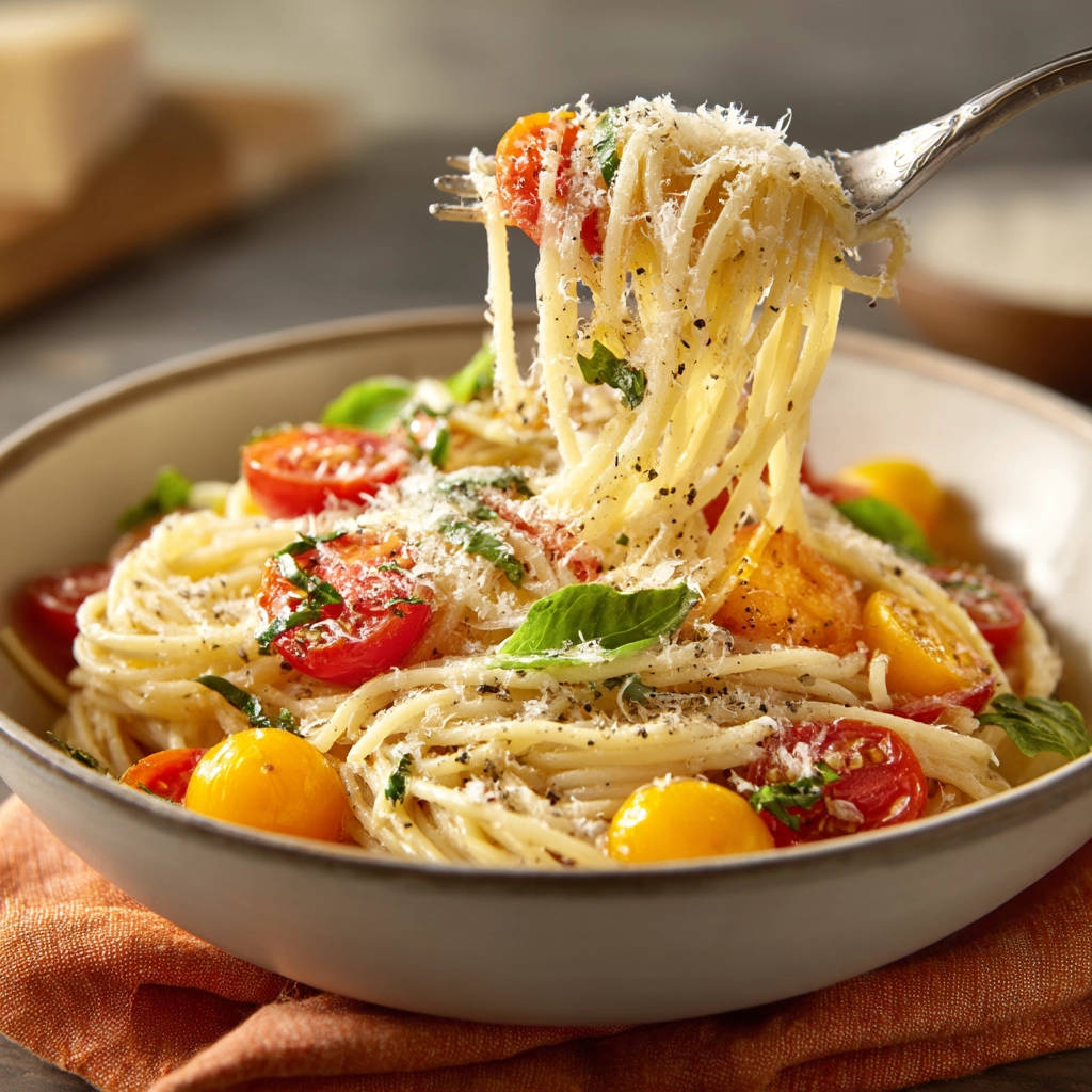 Make perfect Simple Tomato Basil Spaghetti with this easy recipe and secret technique for a never watery sauce that clings beautifully!