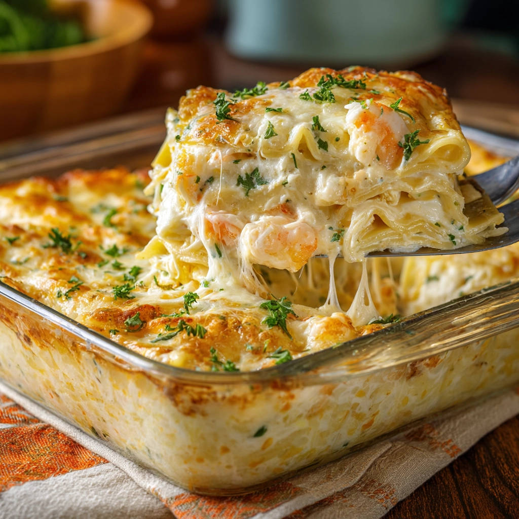 Make the best Creamy Shrimp Pasta Bake with this simple trick for perfectly cooked, never gummy pasta layers! Rich, cheesy, and comforting.