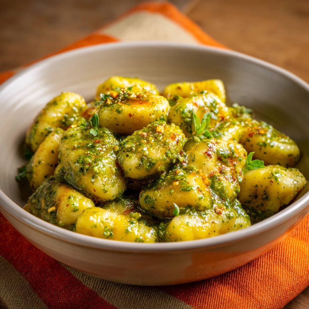 Say goodbye to gummy gnocchi! This crispy pan-fried gnocchi recipe with pesto delivers perfect, golden-brown results every time. Quick & easy!