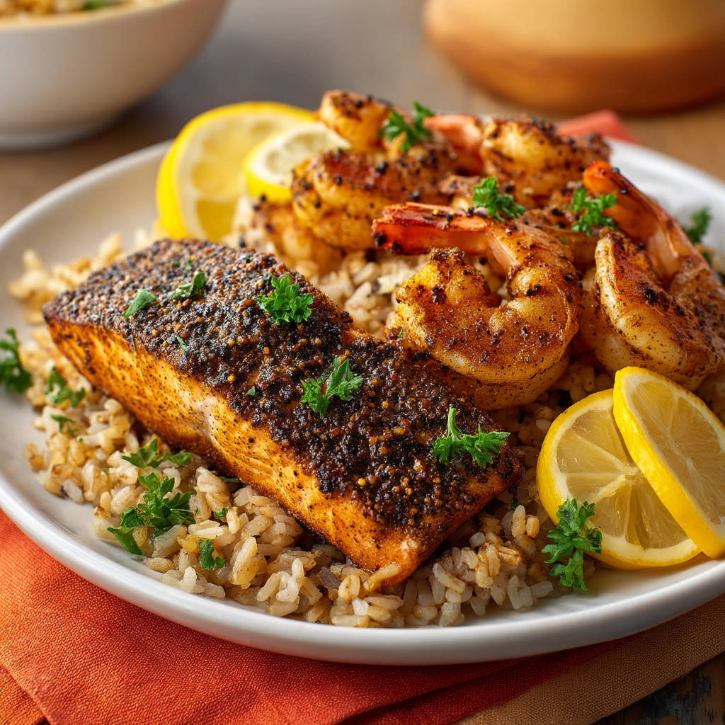Spice up dinner with this Blackened Salmon and Shrimp Bowl recipe! Easy, healthy, and packed with flavor. Ditch bland meals tonight!