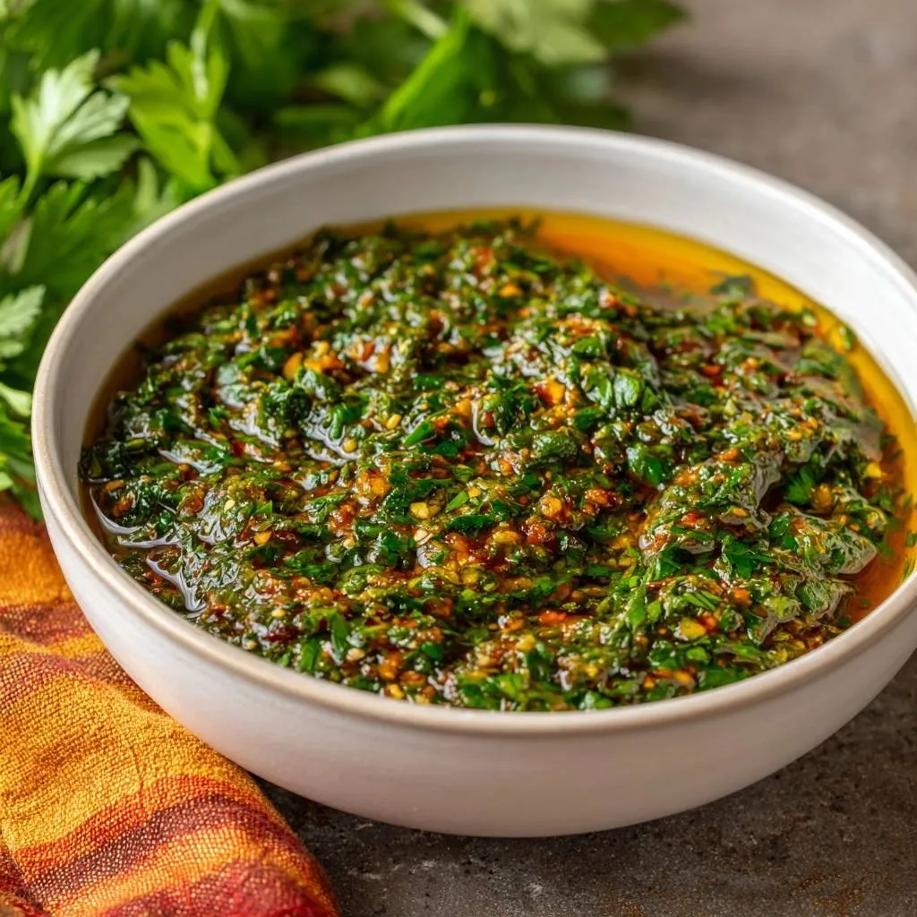 Foolproof chimichurri sauce that stays perfectly emulsified with no oil separation, even after refrigeration. Made by salting and acidulating herbs first for a stable, flavorful condiment.