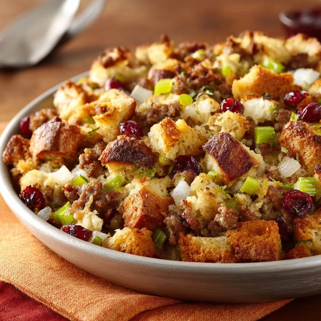 Perfect Savory Sausage & Cranberry Stuffing with crispy top and tender interior. A foolproof recipe for holiday meals.