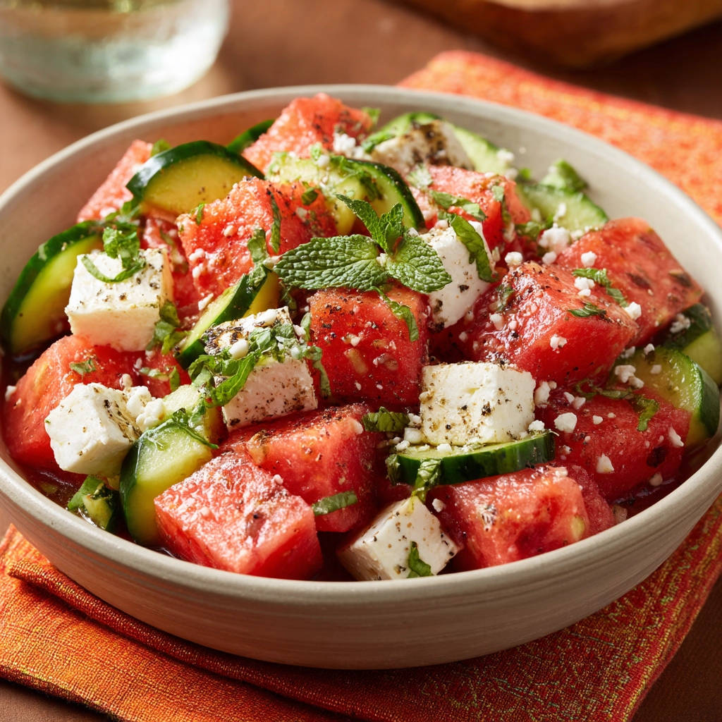 Make the best watermelon feta salad that stays crisp! Our simple secret prevents sogginess for a perfect summer side dish.