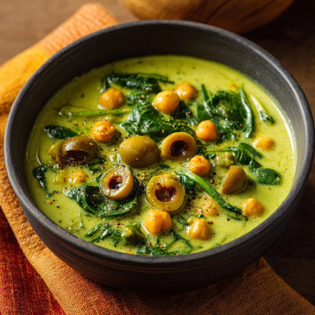 Discover a vibrant and creamy Creamy Chickpea and Olive Stew. Learn the simple trick to keep spinach bright and perfectly textured.