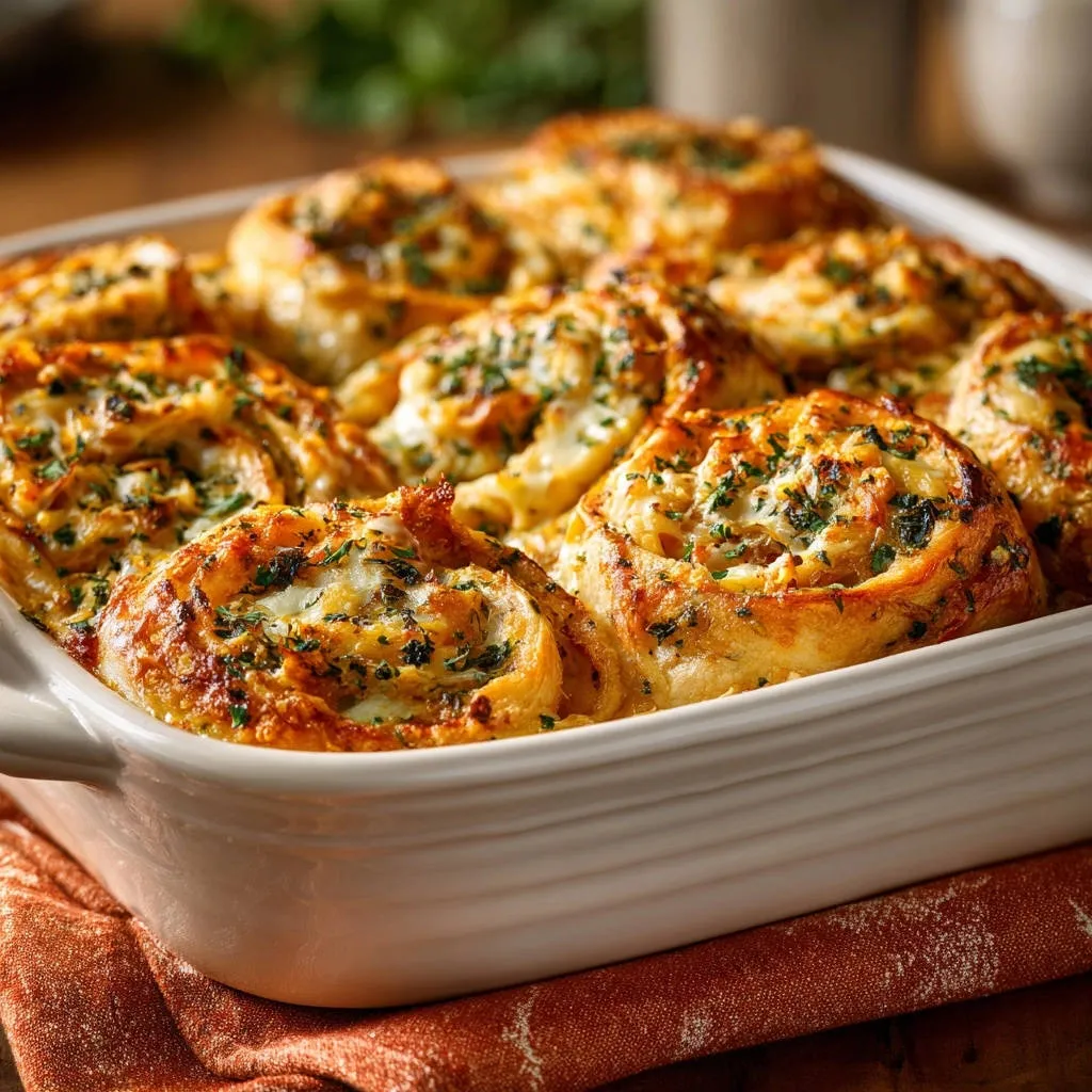- Let the rolls cool slightly in the dish for about 5 minutes before serving. Garnish with fresh chopped parsley.