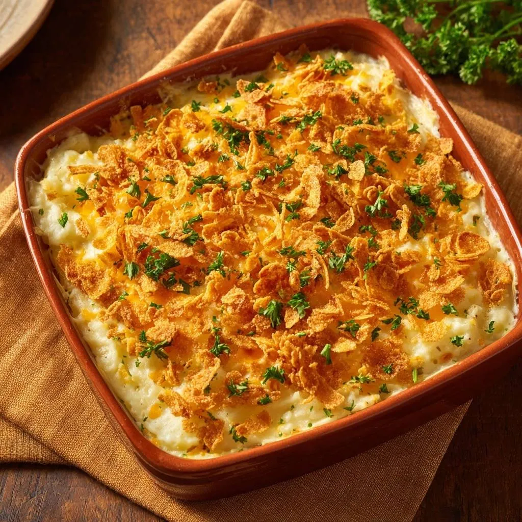 Try panko or crushed rice cereal instead of cornflakes for variety. Mix in sautéed onions or steamed broccoli bits for a loaded Cheesy Potato Casserole feel.