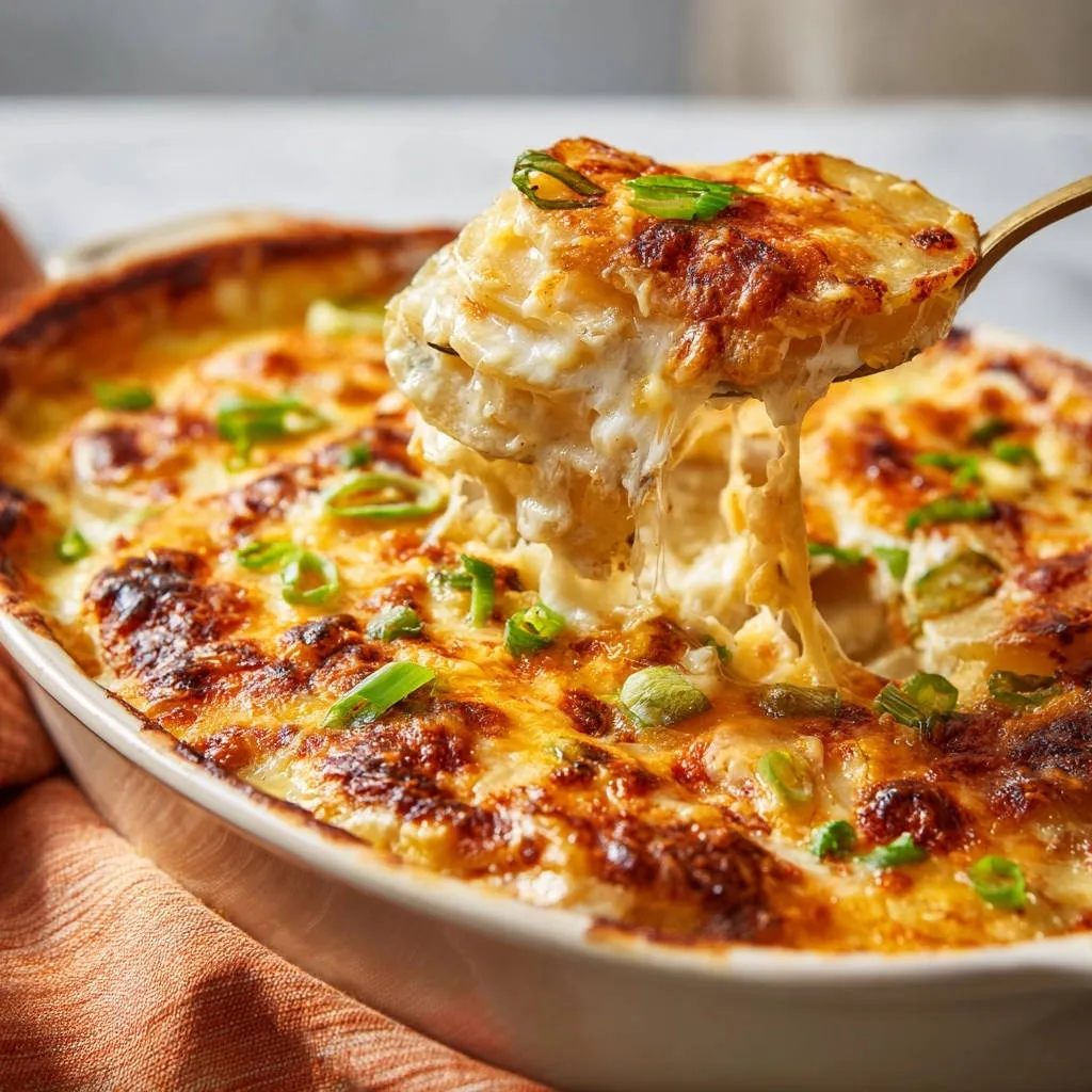 Just before serving, sprinkle your perfectly golden, bubbly Cheesy Scalloped Potatoes with fresh chopped green onions. This adds a lovely pop of color and a touch of fresh, mild onion flavor.