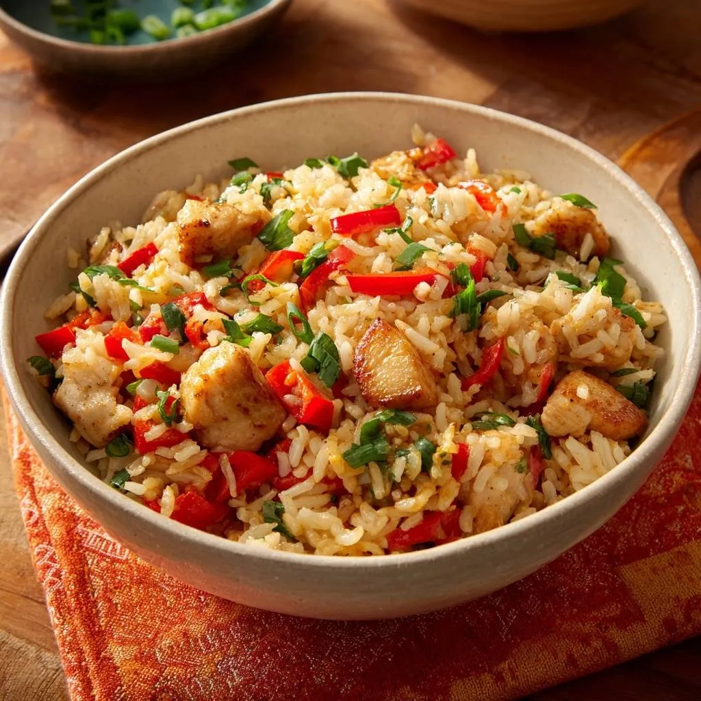Therefore, you get restaurant-style results without the hassle. The day-old rice chills out excess moisture, so high-heat stir-frying crisps it up perfectly. In addition, juicy chicken and crisp veggies join in for balanced bites that pop.