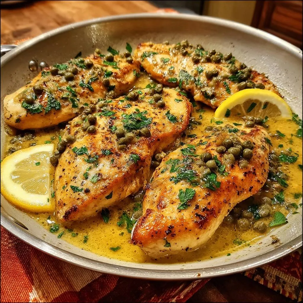 Fresh lemon juice from 2 lemons gives bright acidity; bottled tastes flat. Capers add briny pop, 1/4 cup drained. Chicken broth, 1 cup, builds depth with 4 tablespoons unsalted butter for smooth emulsion.