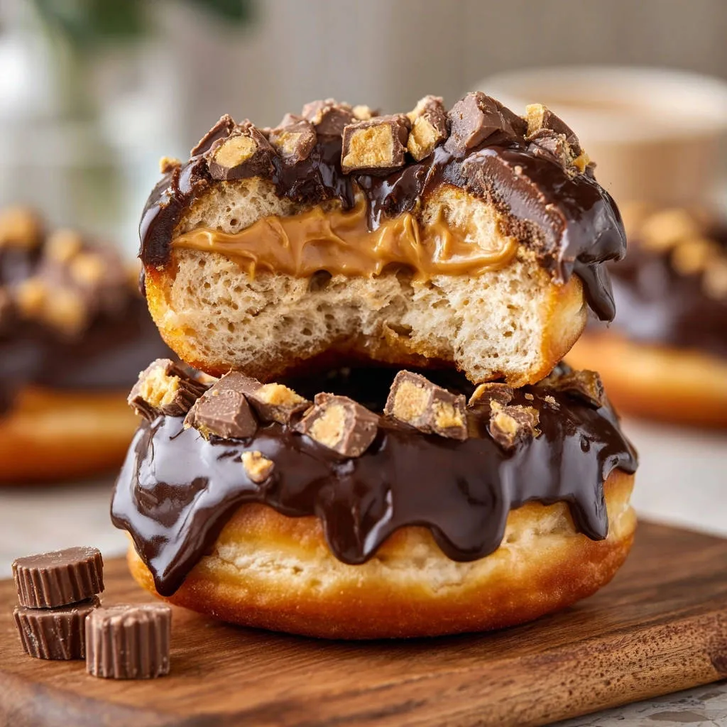 The timeless pairing of rich chocolate and creamy peanut butter is a classic for a reason. In these Chocolate Peanut Butter Cup Stuffed Donuts, the decadent filling is perfectly balanced by a glossy chocolate glaze and crunchy peanut butter cup topping.