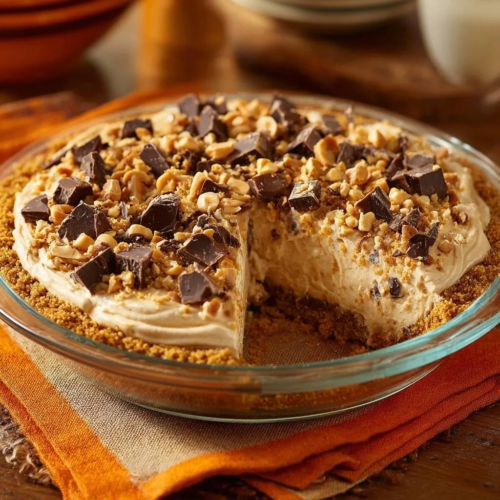 Sprinkle 1/2 cup chopped peanuts over the set pie. Salted peanuts add savory contrast, but unsalted keeps it sweet. For extra, mix 2 tablespoons peanut butter with crumbs into a crumble.