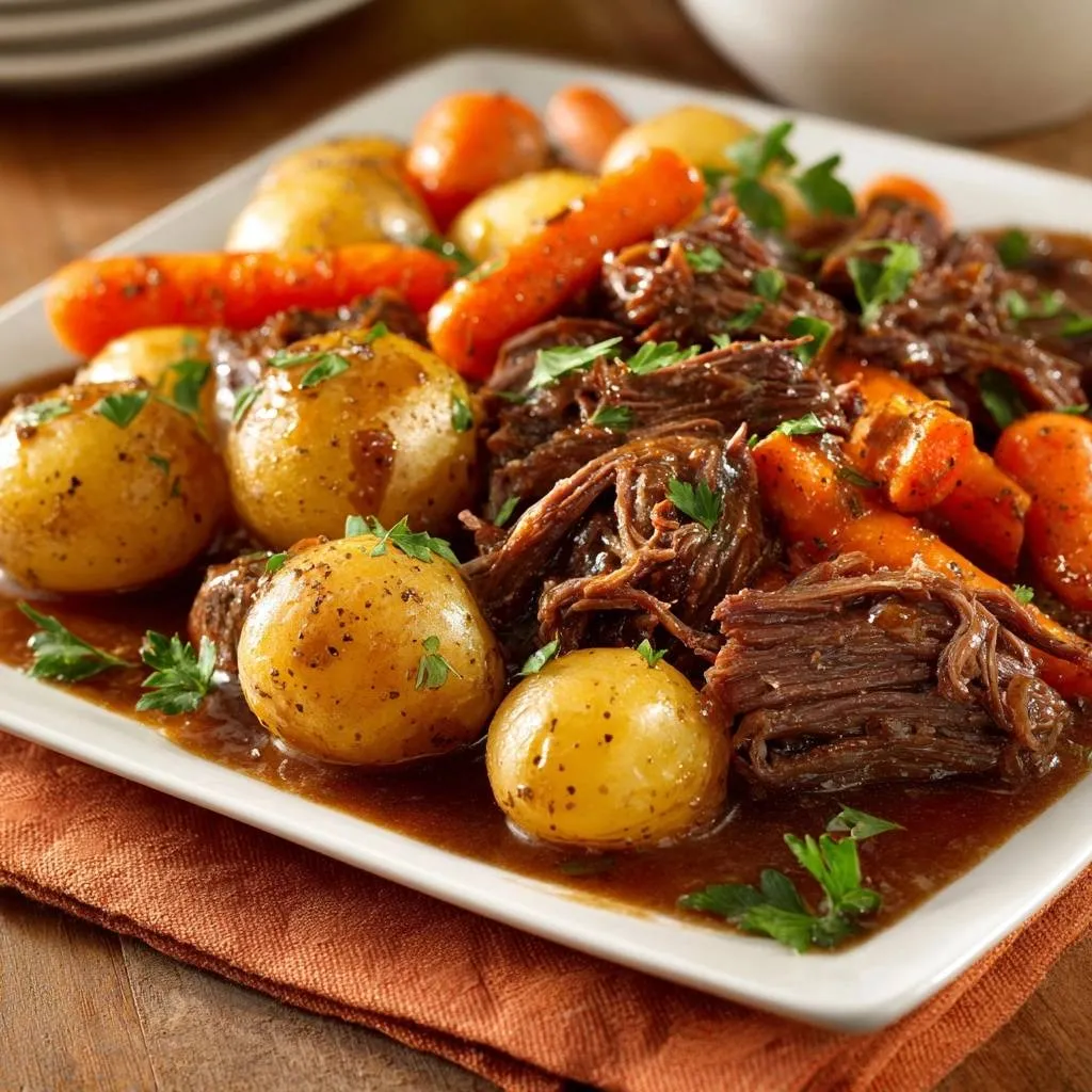 Each ingredient plays a role in Classic Beef Pot Roast success. Beef chuck provides richness, while baby carrots and small potatoes hold shape in the braise. Beef broth adds depth without overpowering.