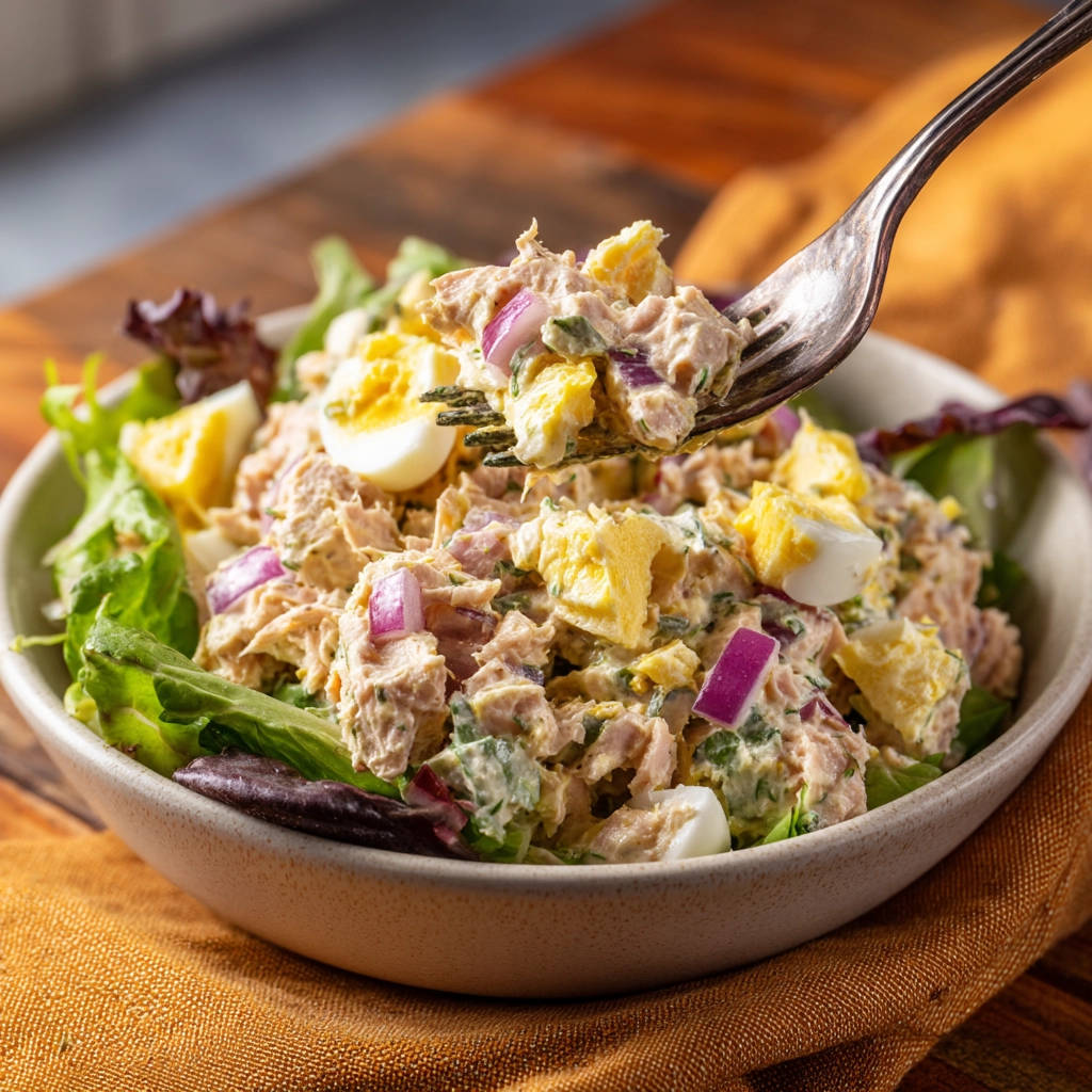 Classic tuna salad is incredibly versatile! While serving it over mixed greens with hard-boiled eggs is a delightful option, here are a few other ideas: