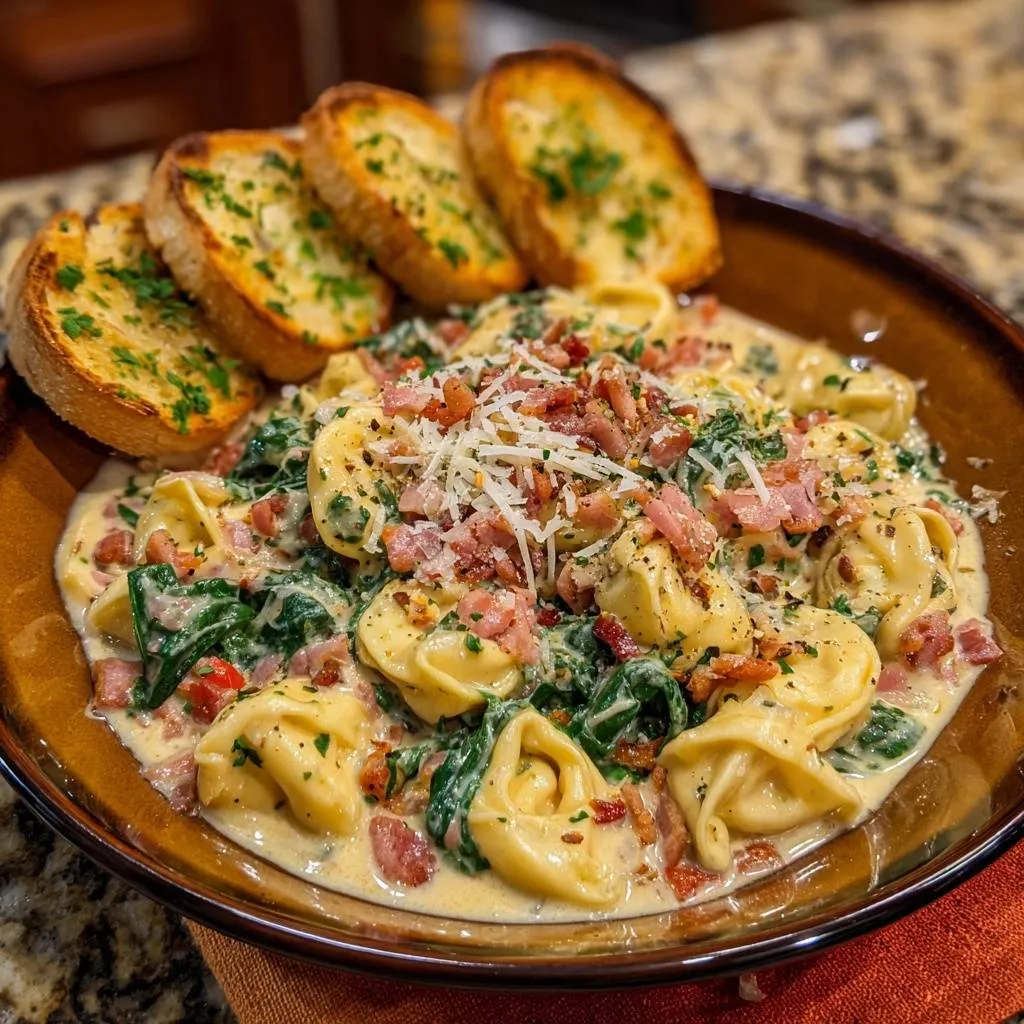Creamy Bacon Spinach Tortellini