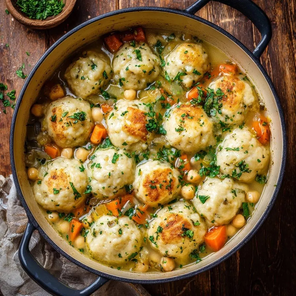 Leeks bring a milder onion flavor than regular onions, so they won’t overpower the soup. Carrots add natural sweetness and beta-carotene. For dumplings, grab 1 1/2 cups all-purpose flour, 2 teaspoons baking powder, 1 teaspoon salt, 1 cup milk, and 1/4 cup chopped fresh parsley.