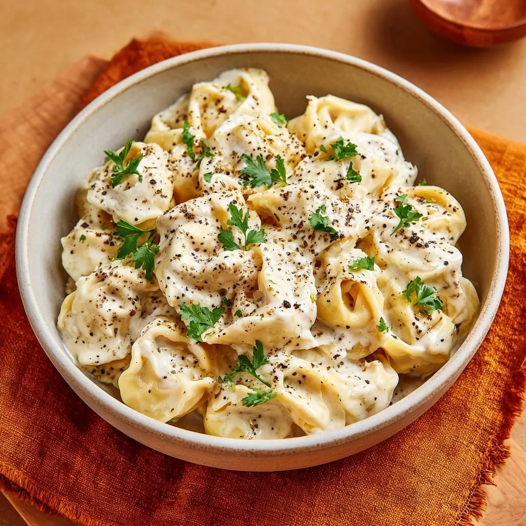 The sauce emulsifies into a glossy coat. Serve immediately into bowls; garnish with pepper and parsley. Peak creaminess hits right away.