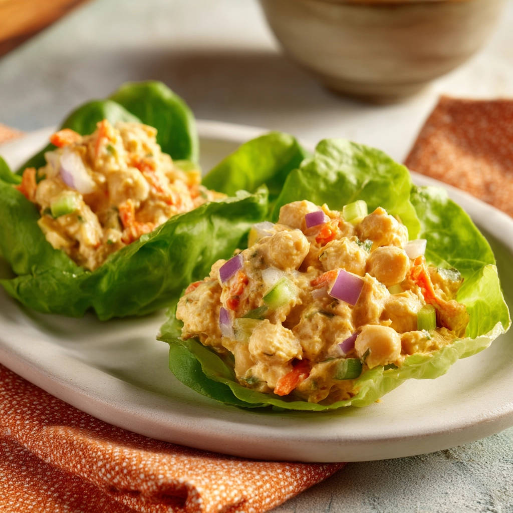 - To serve, spoon generous portions of the chickpea salad into the large lettuce leaves. Enjoy immediately.