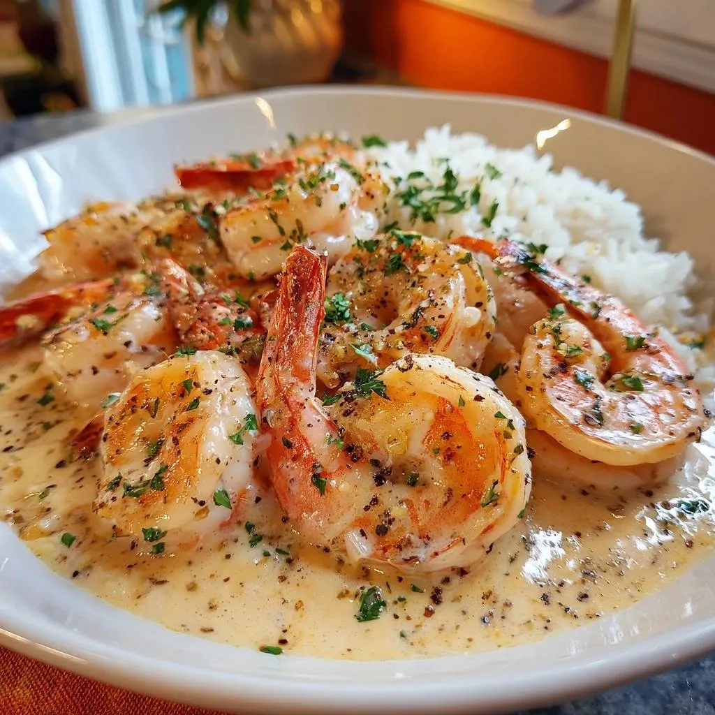 Creamy sauce clings to seared shrimp with a slight bite. Fluffy rice soaks it up without sogginess. Black pepper adds sharp heat, while parsley brings fresh green pop.