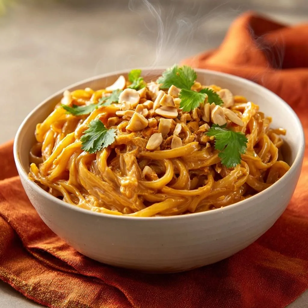 The secret lies in reserving exactly 1/2 cup of that hot pasta water. Pour it in bit by bit while whisking nonstop for two minutes total. You’ll see the sauce transform from thick globs to a glossy, pourable dream that coats everything evenly. Oh man, that first bite? Pure craving satisfaction with tender chicken, glossy noodles, crunchy peanuts, and fresh cilantro bursts.