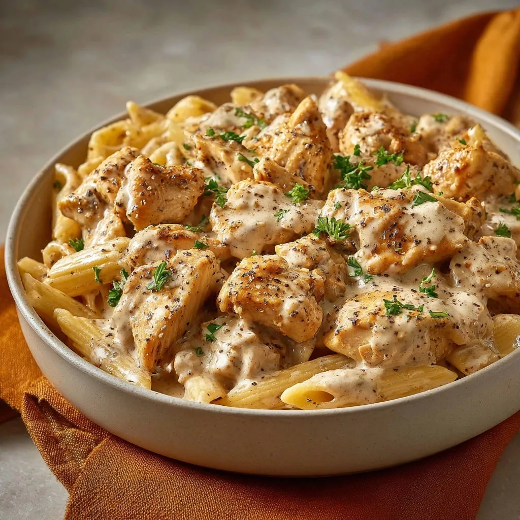 You don’t need exotic ingredients to create something extraordinary. This recipe relies on everyday staples like tender chicken, penne pasta, fragrant garlic, rich cream, and savory Parmesan cheese. Together, they transform into a harmonious dish that’s bursting with familiar, delightful flavors.