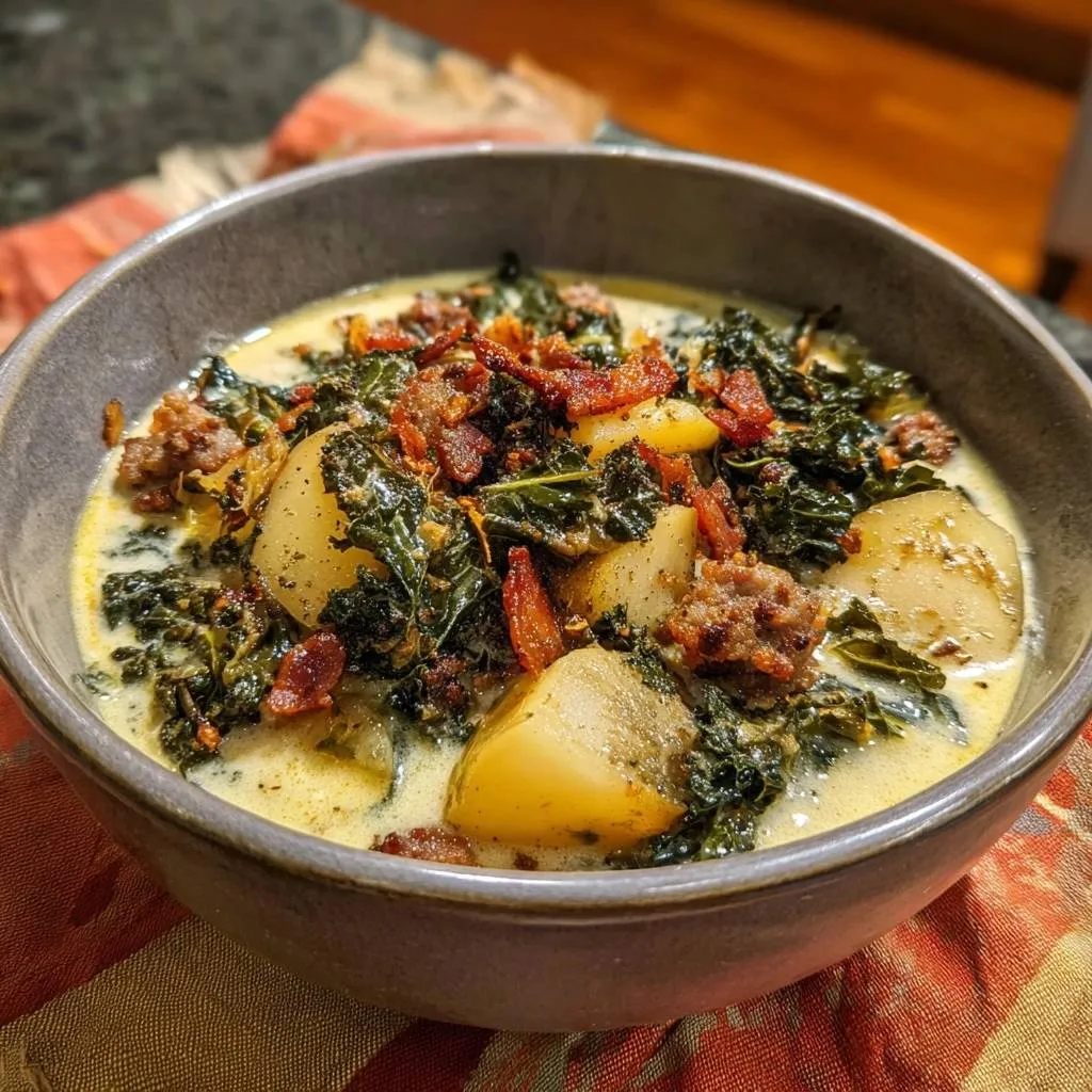 Firm potato chunks contrast beautifully with silky wilted kale. Crispy sausage bits add crunch. Together, they create a satisfying mouthfeel that keeps you coming back for more.