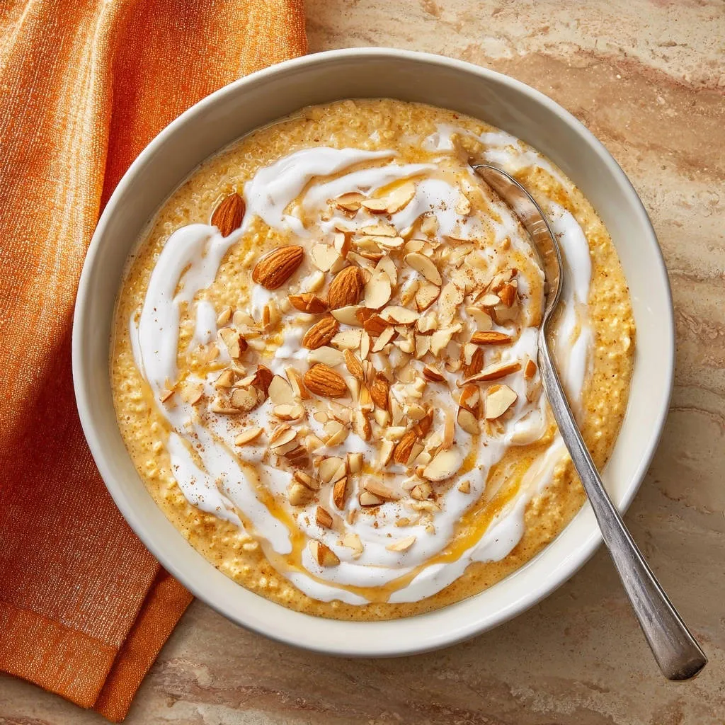 To garnish, swirl the remaining 1/4 cup of coconut milk artfully on top. Sprinkle generously with both whole and sliced almonds for a delightful crunch and visual appeal. A final pinch of extra cinnamon will enhance the aroma. Serve warm and savor every spoonful of your creation!