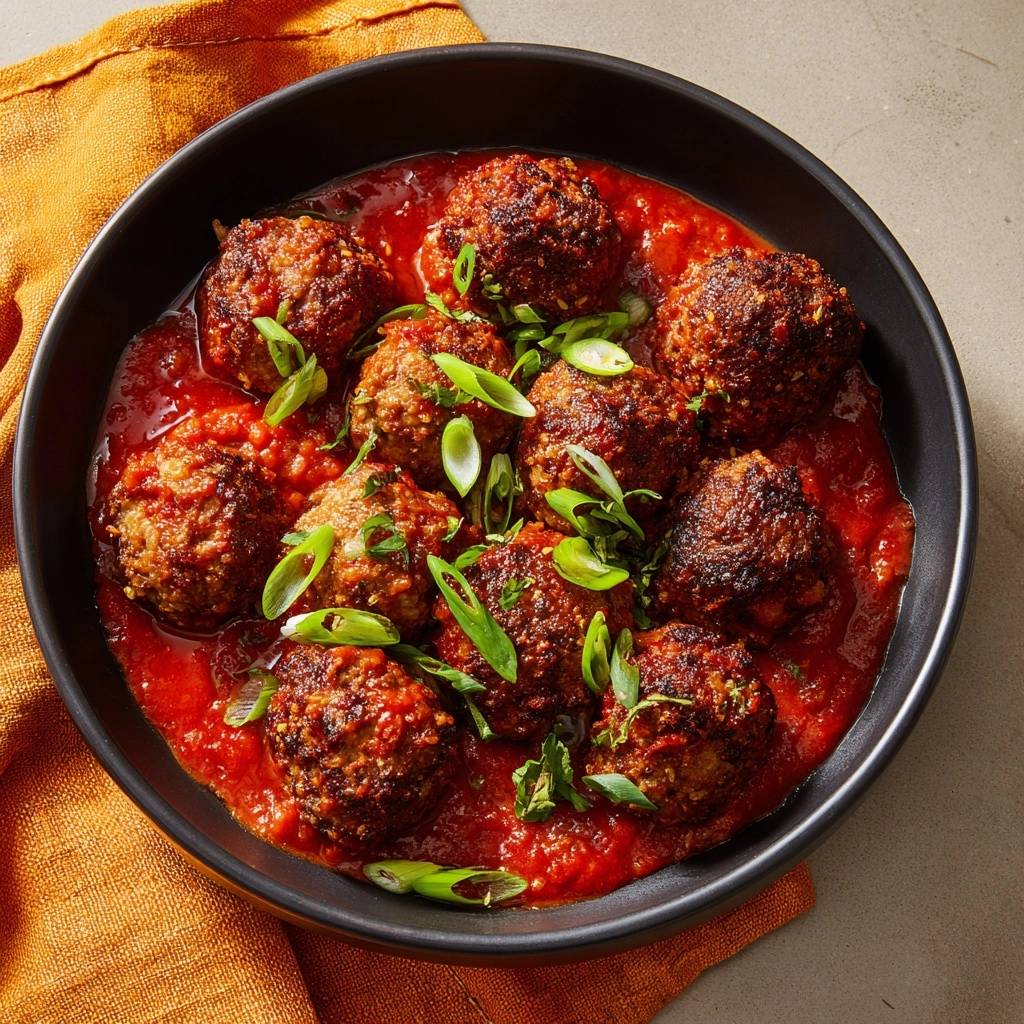 Ladle a generous amount of hot marinara into the bottom of a wide, shallow bowl. Carefully place the hot meatballs into the sauce so they are only half-submerged. This allows the bottom half to soak up the zesty tomato flavors while the top half stays exposed to the air, maintaining its crunch until the very last bite.