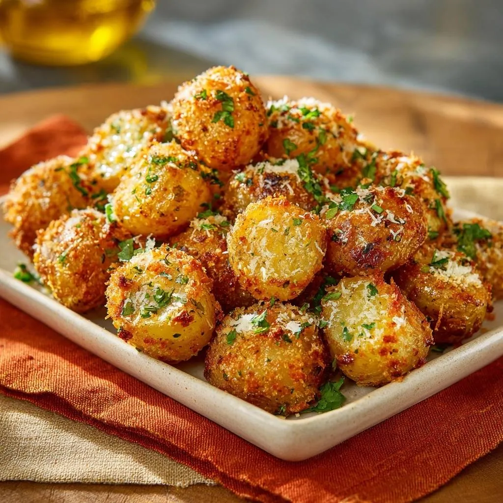 Chopped fresh parsley adds bright freshness, while 3 tablespoons olive oil binds without sogginess. Season with 2 teaspoons salt and 1/2 teaspoon pepper for balance. These Crispy Panko Parmesan Potatoes clock in low-cal with fiber from potatoes, making them a guilt-free side.