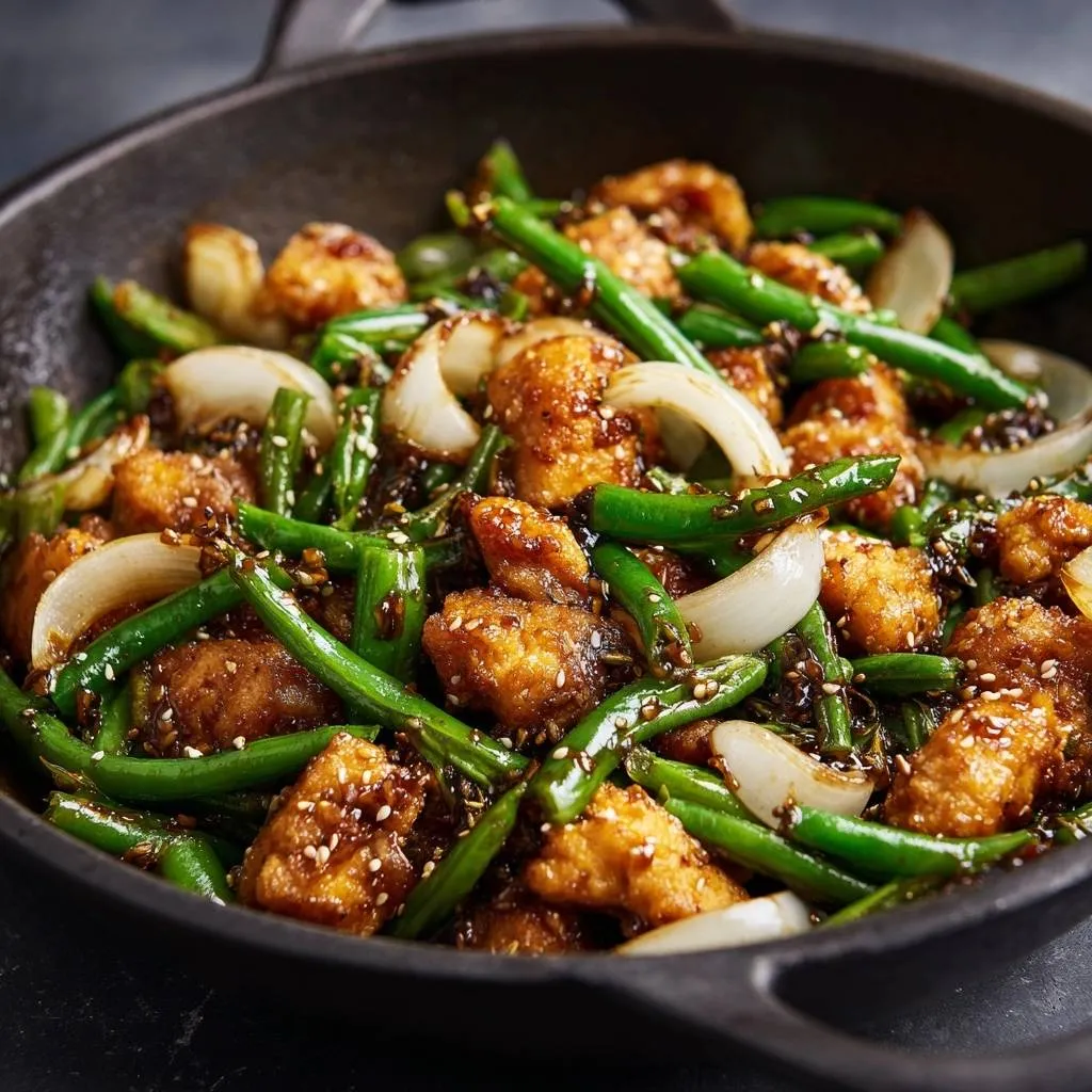 Crispy Sesame Chicken and Green Bean Stir-Fry
