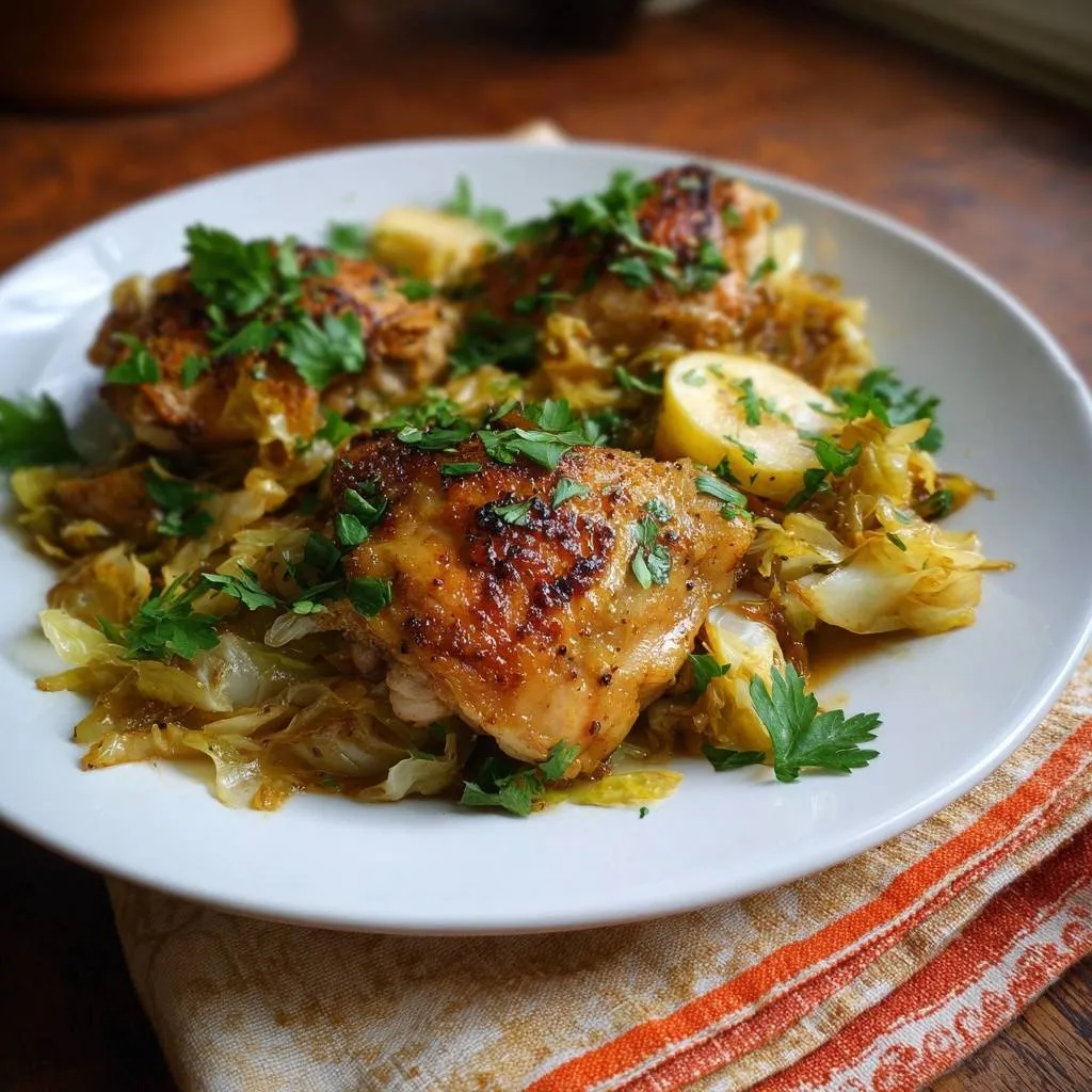 Tired of chicken thighs with rubbery skin that chews like an old tire? This recipe changes everything. You get ultra-crispy, golden skin from a high-heat sear and spice crust that locks in every bite. Below it, the apple cabbage Brussels hash stays tender-crisp, balancing sweet and earthy flavors perfectly.