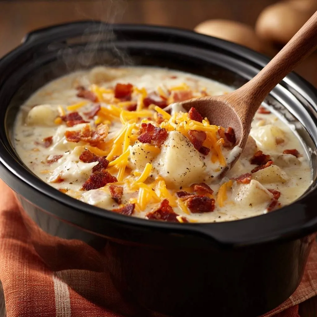 You’ll smell the garlic blooming softly after a couple hours. That’s your cue everything’s on track for flavorful crockpot loaded potato soup.