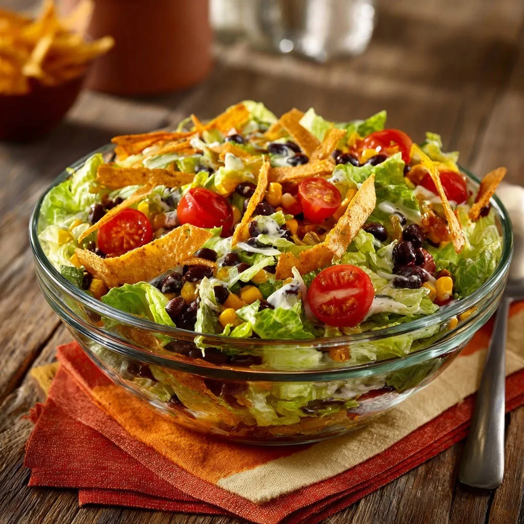 Present your perfectly layered, vibrant, and crunchy fiesta salad right away. This ensures maximum freshness and crispness, guaranteeing every single forkful is a pure delight.