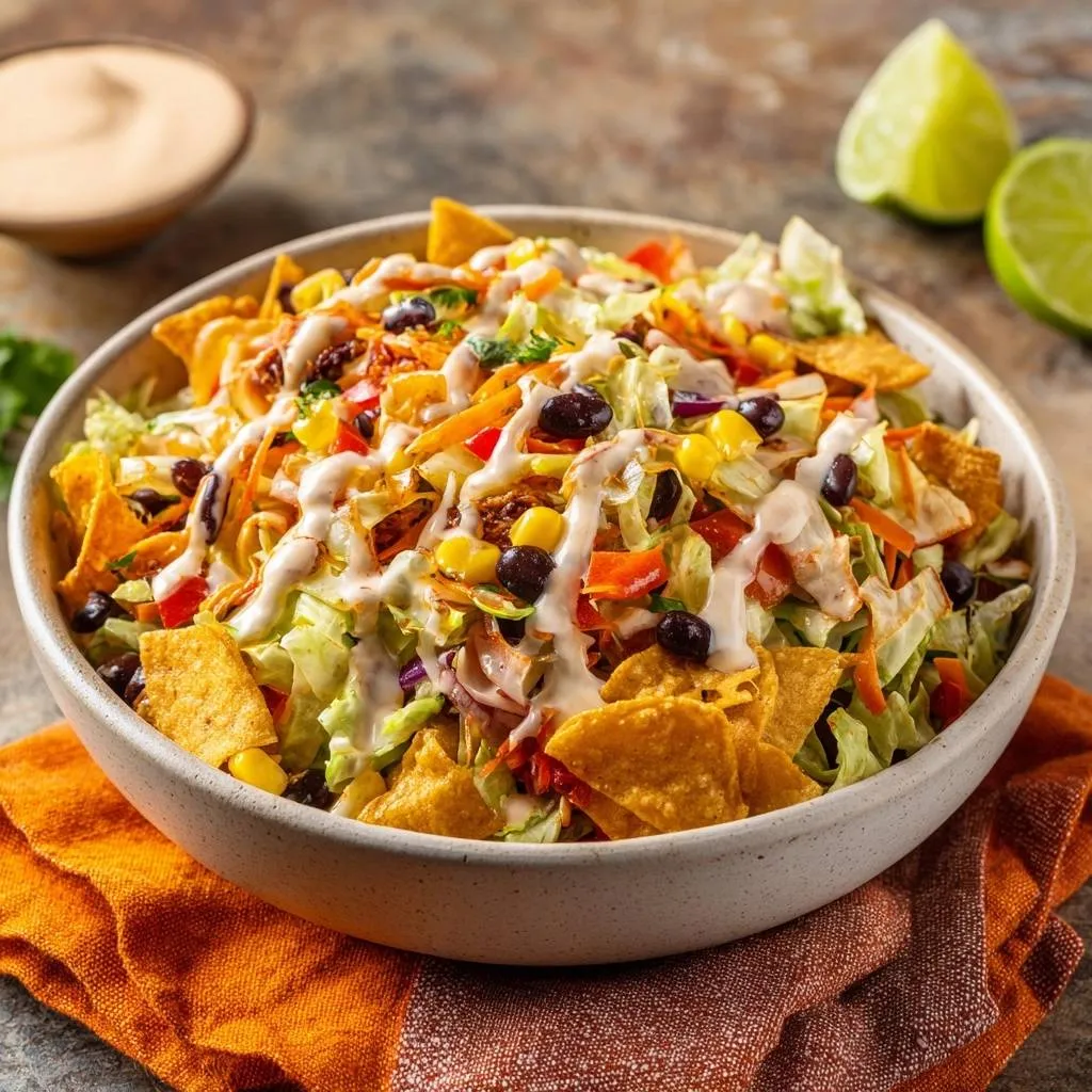 Sick of biting into a taco salad only to get mushy chips that ruin the whole thing? This crunchy taco slaw salad fixes that frustration with a smart layering trick. You keep those tortilla chips crisp while bold Mexican flavors pop from fresh cabbage, beans, corn, and zesty lime crema. It’s potluck gold or weeknight magic in minutes.