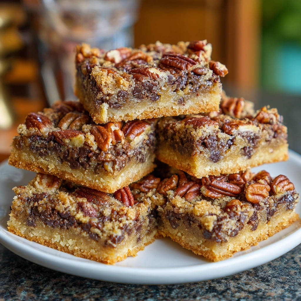 There you have it – a recipe for Pecan Pie Bars that are not only incredibly delicious with their rich, nutty, chocolate-kissed filling and buttery crust, but also result in those satisfyingly clean, perfect slices every single time. No more crumbly catastrophes! These bars are wonderful for holiday gatherings, casual desserts, or just because you’re craving that classic pecan pie flavor in an easy-to-eat format. They’re perfect for packing in lunchboxes or bringing to a party.