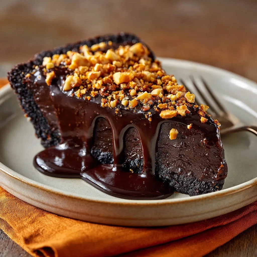 - Garnish and Serve: Once the pie is thoroughly chilled and firm, remove it from the refrigerator. Pour the warm ganache drizzle over the top of the pie. Sprinkle generously with the chopped walnuts or pecans. For the cleanest slices, dip your knife in hot water and wipe it clean before each cut. Enjoy your perfectly sliced, decadent pie!