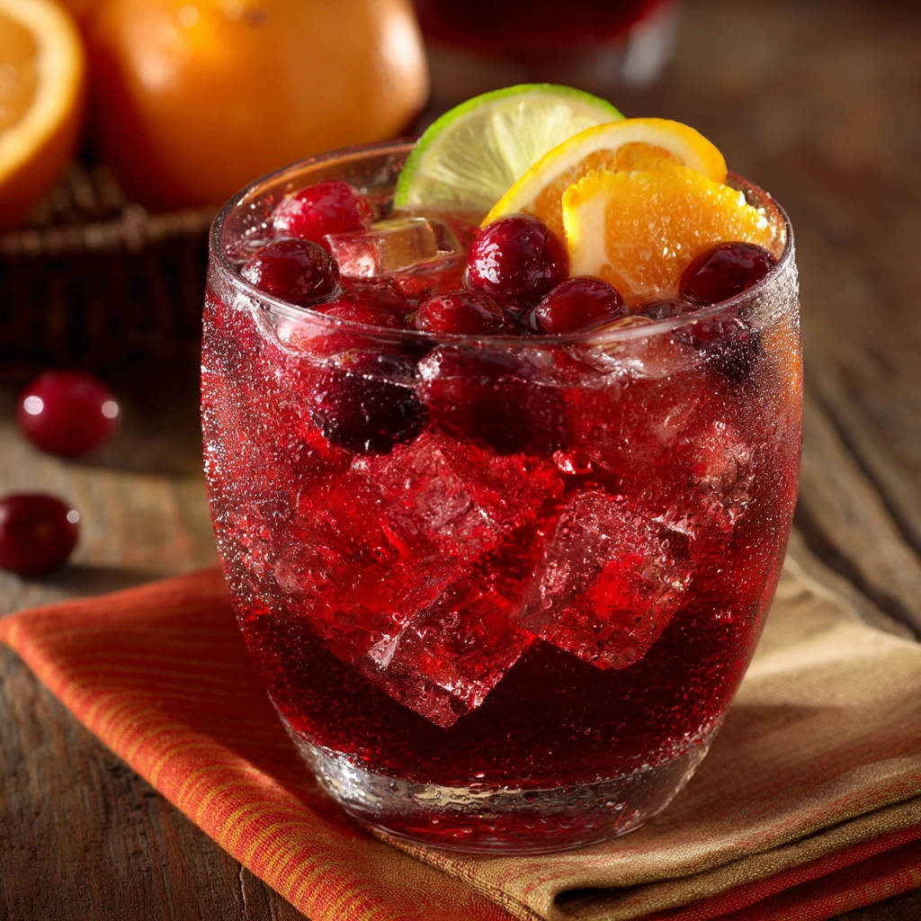 - Add the Garnish: Before pouring the liquid, make the glasses look extra festive! Tuck a few fresh cranberries, a slice of orange, and a lime wedge into each glass on top of the ice. These garnishes aren’t just for looks; they continue to infuse subtle flavor as you sip and are a lovely treat at the end. For extra flair, you could even add some candied cranberries if you have them on hand!