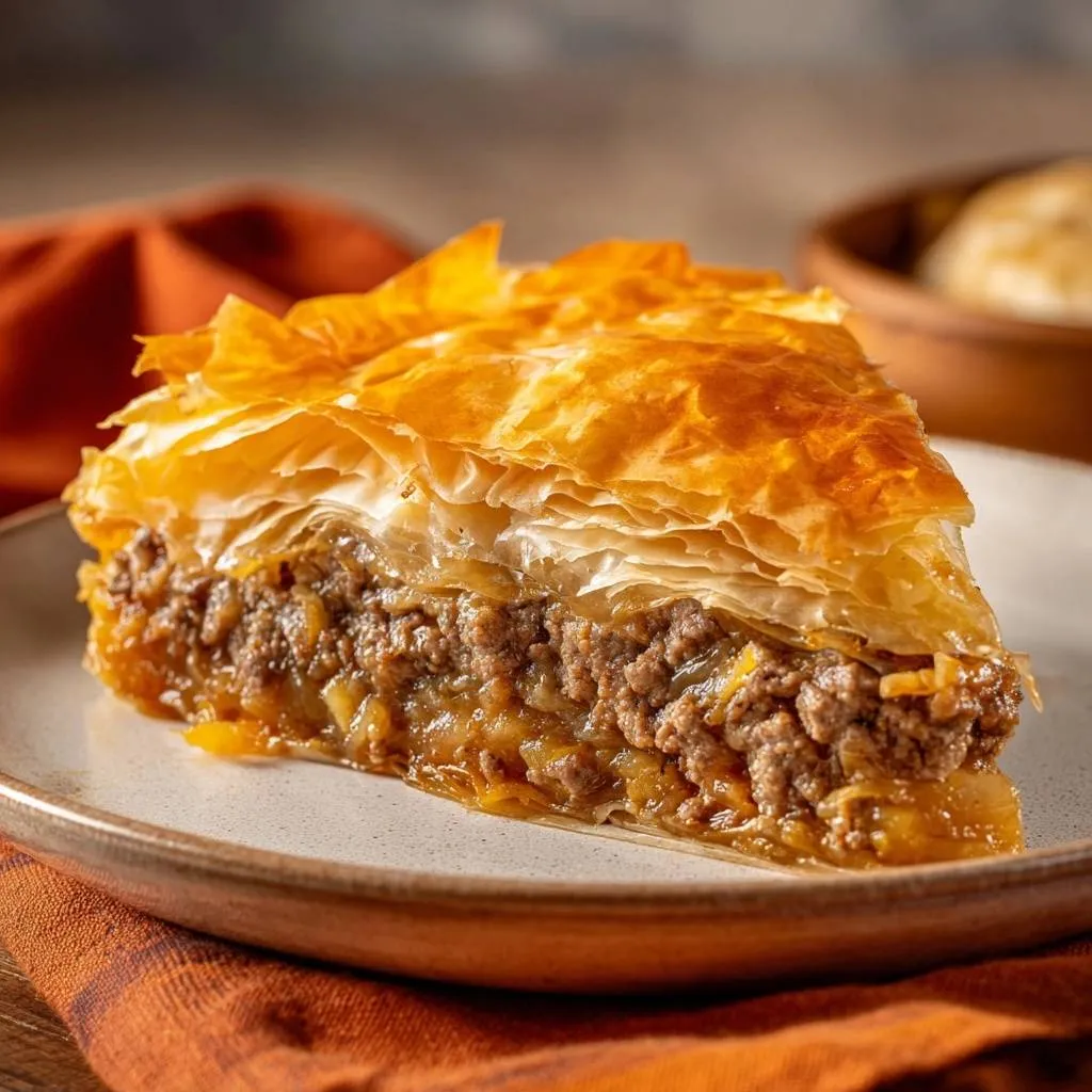 Swap ground beef for turkey or lamb, but lean meats need extra olive oil to avoid dryness. No leeks? Use green onions or extra onions with a splash of water for sweetness. Phyllo can’t be subbed easily; puff pastry works but won’t give the same shatter-crisp layers. Butter is best; oil makes it greasy.