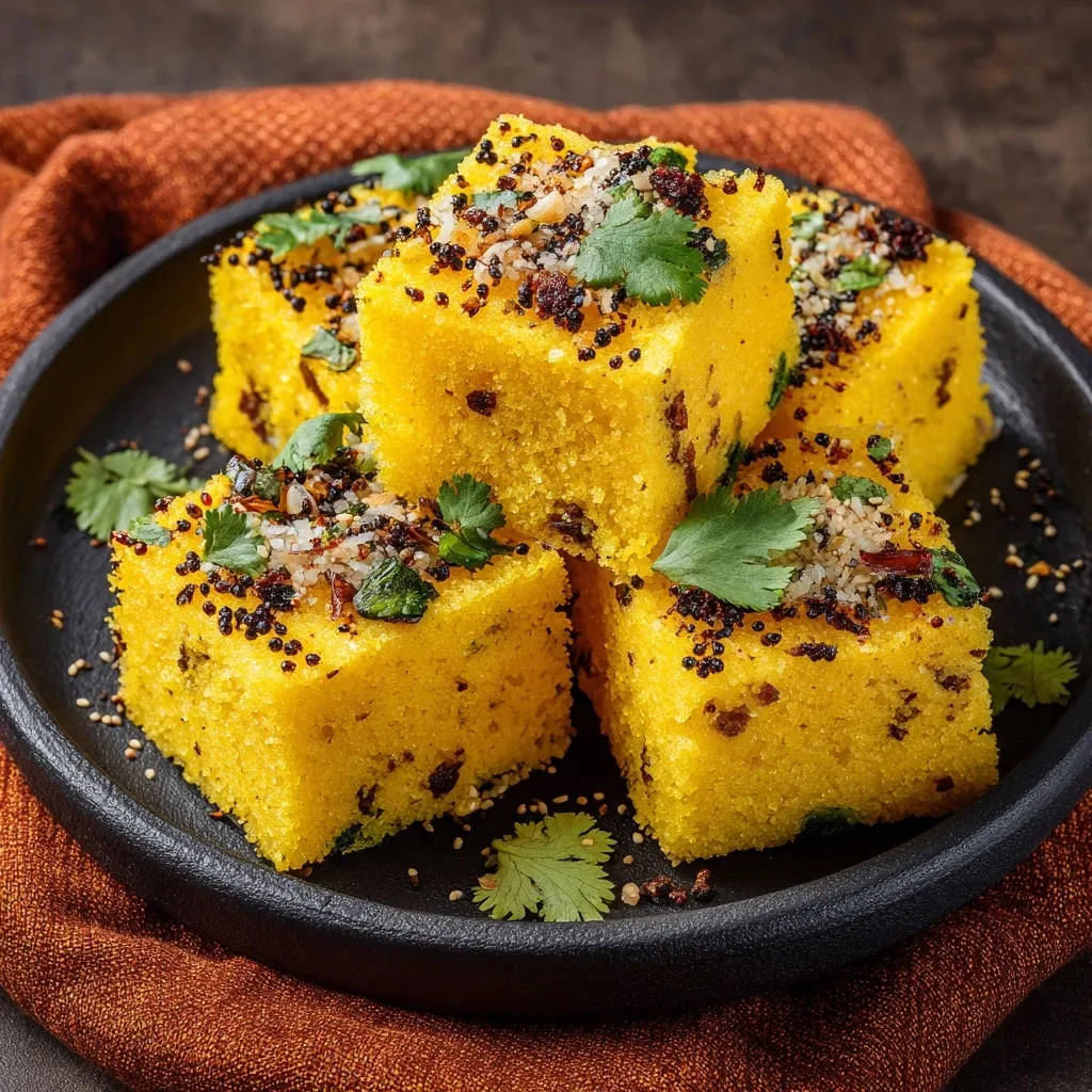 This Fluffy Instant Savory Steamed Cake is traditionally enjoyed paired with vibrant green cilantro chutney and a touch of sweet-and-sour tamarind sauce for a perfect flavor contrast.