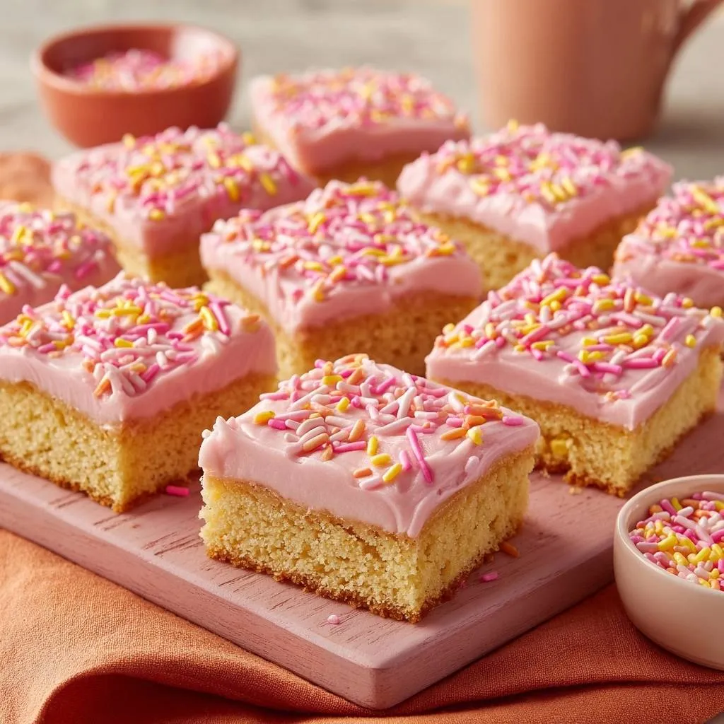 No cake flour? Sub all-purpose but expect slight density. These pink sprinkle bars still shine.