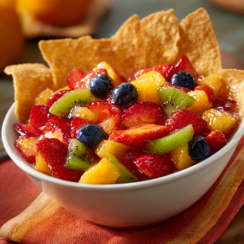 - Serve the fruit salsa immediately in a bowl with cinnamon sugar tortilla chips for dipping. The quick toss right before serving prevents the fruit from releasing excess liquid into the glaze, keeping your salsa fresh and perfectly textured.