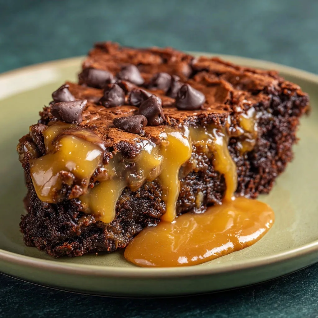 - Warm the caramel sauce slightly if it’s too thick, then dollop about 3/4 cup of the caramel over the batter in the pan. Use a knife or a skewer to gently swirl the caramel into the batter, being careful not to overmix it into the chocolate layer. The goal is distinct caramel pockets, not fully incorporated.