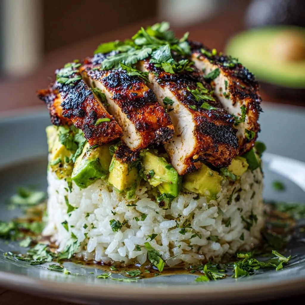 These bowls are a meal in themselves, but they pair wonderfully with a simple, crisp green salad or extra steamed vegetables for added freshness. For an appealing presentation, consider using a ring mold for the rice and artfully layering the avocado and chicken on top, finishing with plenty of fresh cilantro and lime wedges.