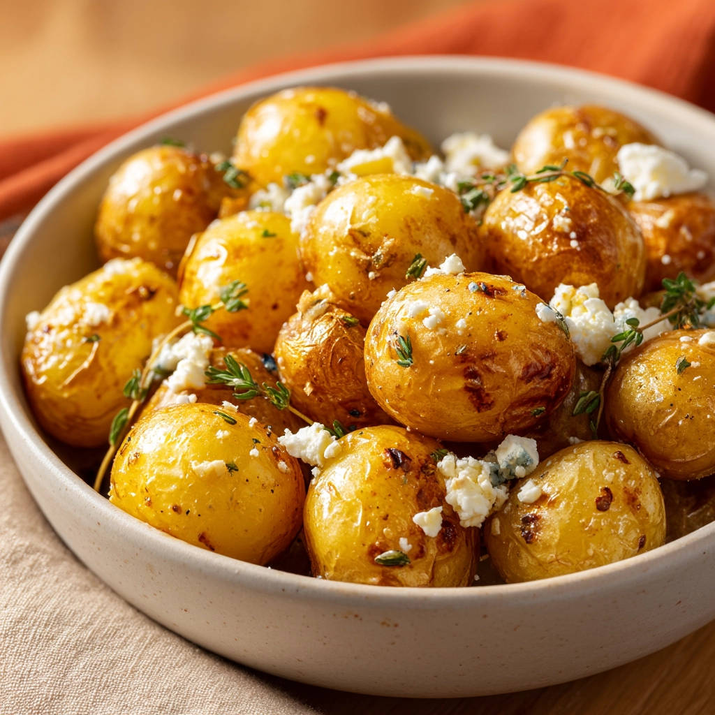 - Finish with cheese. Remove from the oven and transfer to a serving bowl. Sprinkle with crumbled feta or goat cheese. The heat from the potatoes will slightly melt the cheese, creating a delicious and creamy contrast to the crispy potatoes.
