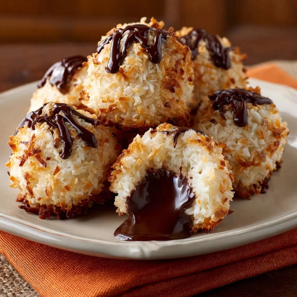 Here’s the expertise booster: freeze those chocolate balls for exactly 20 minutes first. This solidifies them just enough to survive the oven’s heat without leaking, so the centers melt right as you bite in. Trust me, it’s the game-changer for gooey chocolate coconut macaroons.