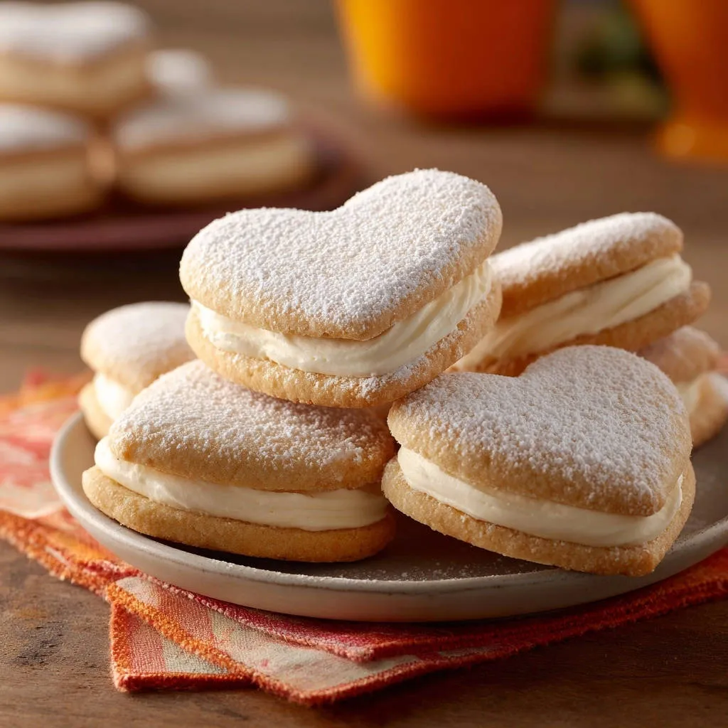 Lightly dust the assembled Heart-Shaped Cream Sandwich Cookies with powdered sugar just before serving for an elegant finish. This final touch adds visual appeal and a subtle extra sweetness.